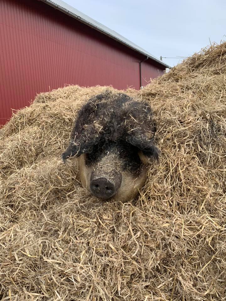 I tillegg til ullgrisene bor det også noen hester, høner, katter og hund her på gården.